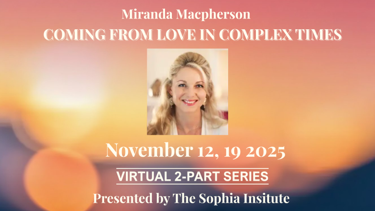 " A transformative two-part virtual series with Miranda Macpherson, in partnership with The Sophia Institute. Discover how to return to inner stillness and grace, no matter the challenges of our world. "