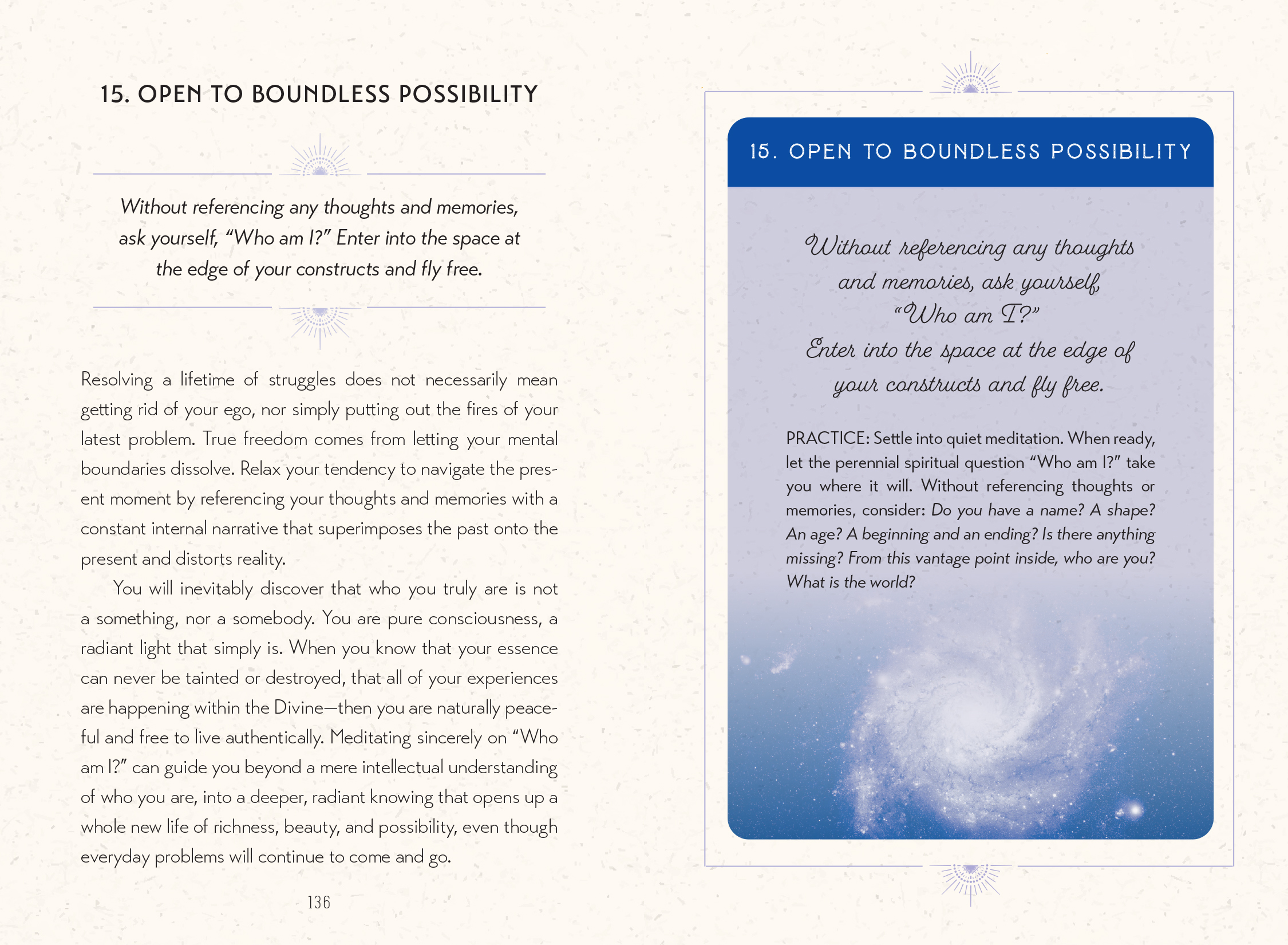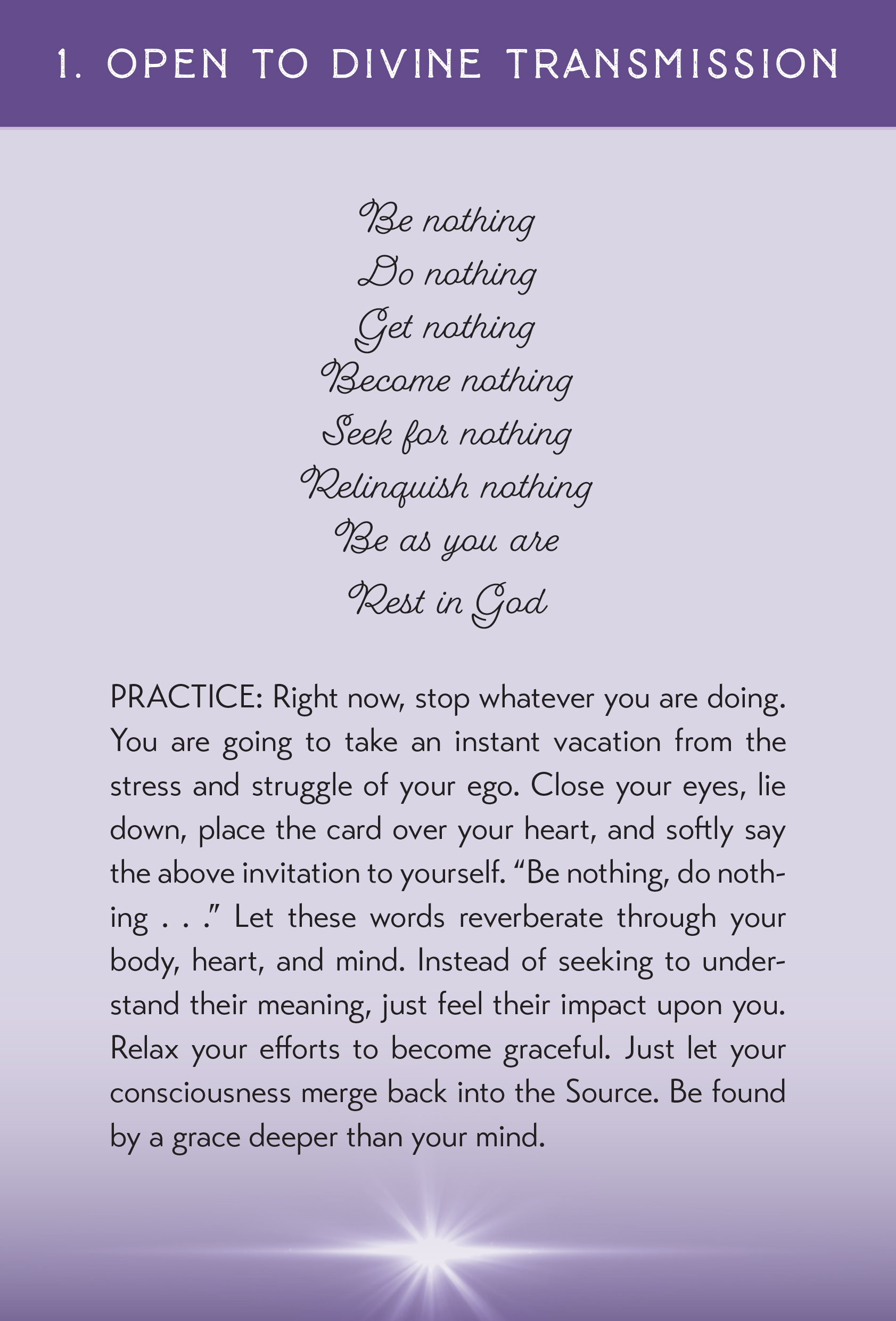 I have created these cards as a way to take the substantial body of advanced spiritual teachings on grace and ego relaxation into user-friendly, bite-size chunks (but without dumbing down) to help you dive deep and apply the wisdom you find to the precise questions and grappling points of your life situation on any given day.
