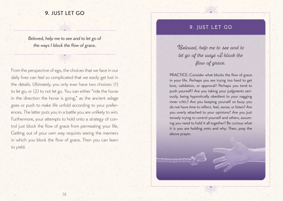 This card deck and guidebook invite you to experience and work creatively with each of the four dimensions of grace: Grounding in Grace, Receiving the Blessings of Grace, Transforming Power of Grace, and Embodying Grace. Some cards help illuminate an obstacle, while others will invite you into reflective inquiries, meditations, and prayers that refine your consciousness so you can relax into the luminous presence at your core. Most importantly, each card contains skillful and compassionate practices to engage that are designed to facilitate experiencing and living your daily life from grace.